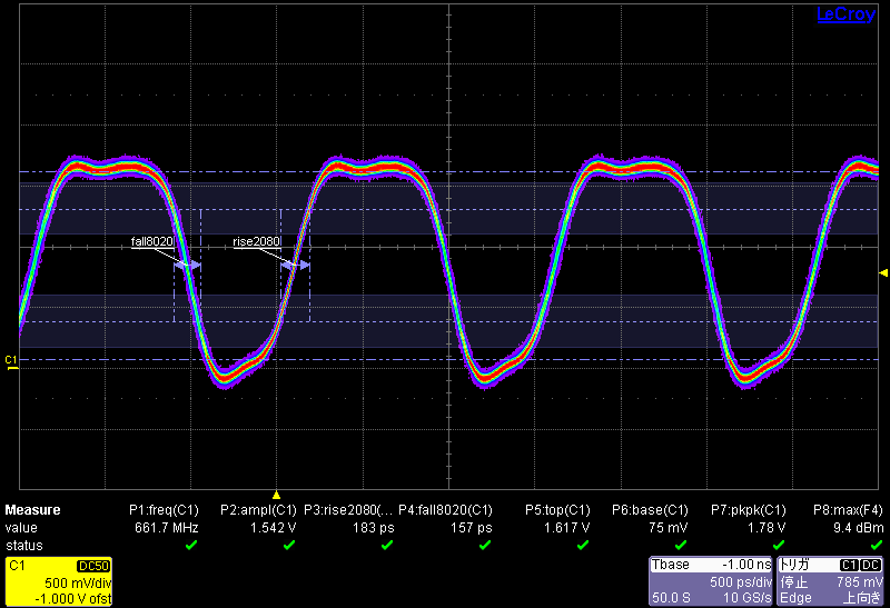 | 660MHz, 1.65V LeCroy WR204Xi-A 重ね描き(Transition Time Measured) | ![]() |